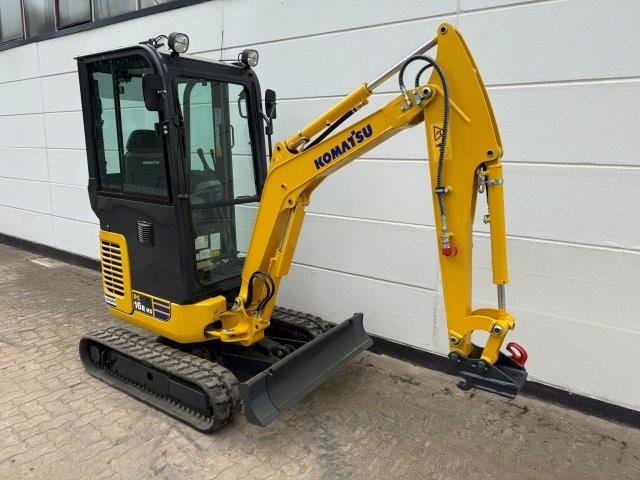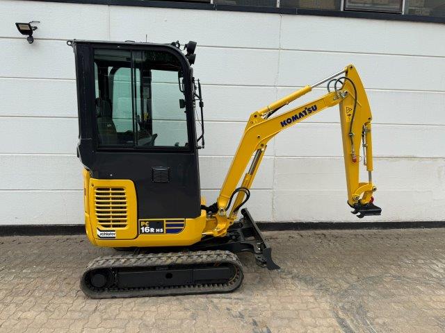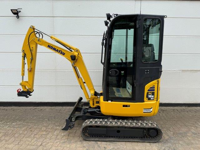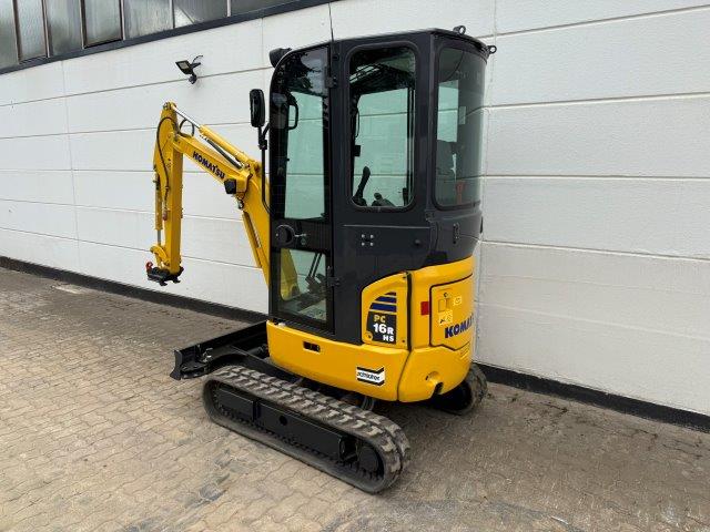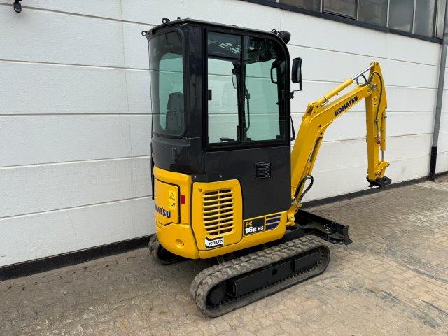 MINI EXCAVATOR KOMATSU PC 16 R-3 HS (EU-5) CAB + HEATING + 1.LEIT STD 2 TRAVEL SPEEDS WITH AUTOMATIC CONTROL (AUTO-SHIFT-DOWN) CLOSED-LOAD-SENSING-SYSTEM TWO-WAY AUXILIARY HYDRAULICS UP TO BOOM, SWITCHABLE TO HAMMER OPERATION DOZER BLADE WORK LIGHTS ON BOOM HYDR ADJUSTABLE UNDERCARRIAGE (HS) SWING BOOM, PROTECTIVE COVER FOR BOOM LIFT CYLINDER ACOUSTIC TRAVEL ALARM CE CONFORMITY 1.760 MM MONOBLOC BOOM+HYDR. CIRCUIT 1,215 MM DIPPER STICK +1.LEIT.STD STANDARD COUNTERWEIGHT DELUXE DRIVER'S SEAT 2FIX SAFETY BELT POWER/LUBRICANTS STD RUBBER TRACK (SHORT PITCH) QUICK-CHANGE PLATE MS 01, MECH WITH LOAD HOOK C201 FOOT PEDAL 2 LATERIAL MIRROR RADIO PREPARATION (WITHOUT RADIO)