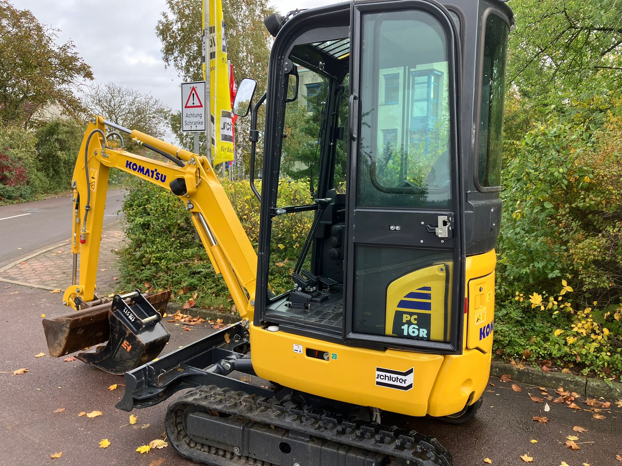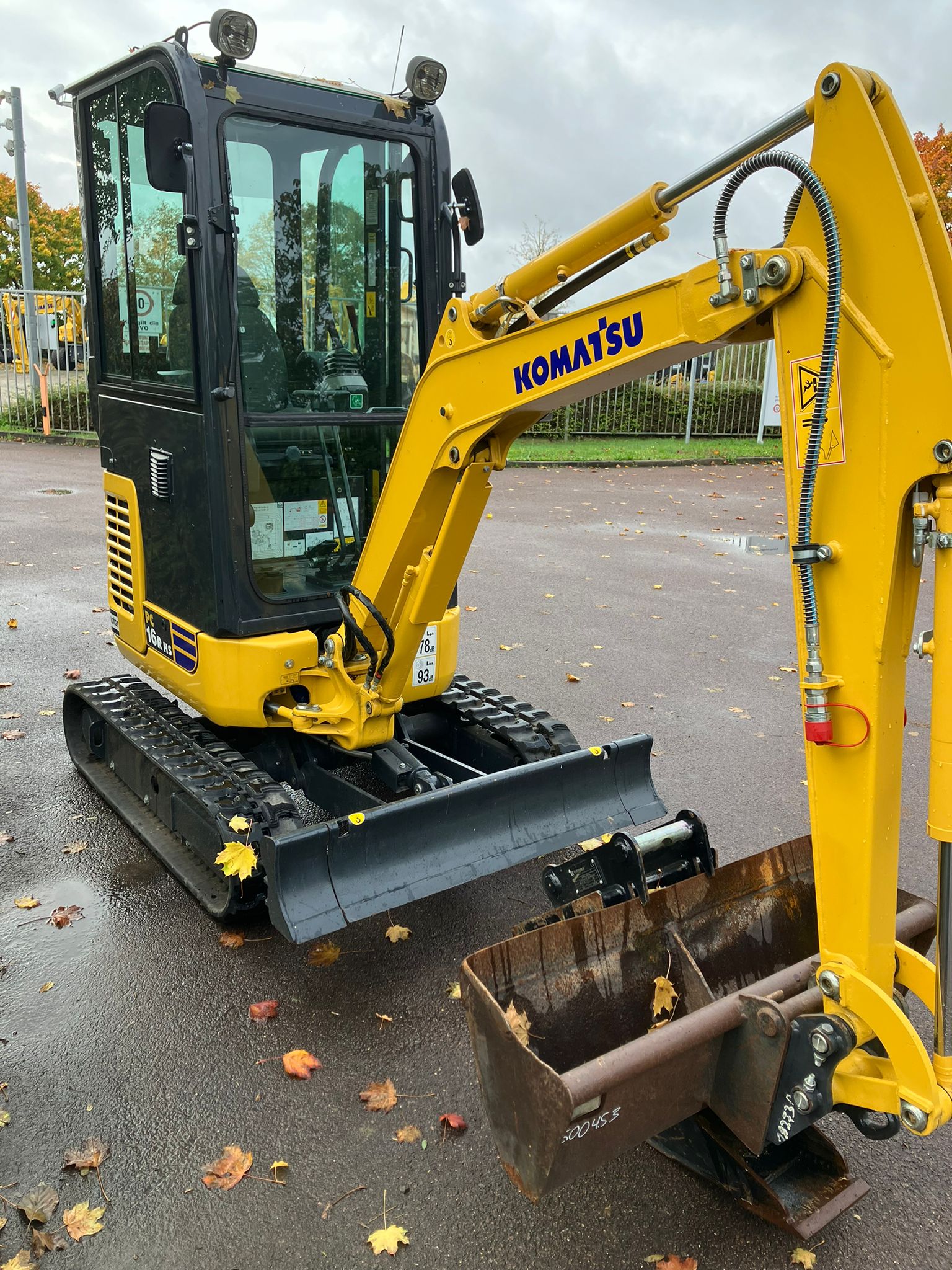 MINI EXCAVATOR KOMATSU PC 16 R-3 HS (EU-5) CAB + HEATING + 1.LEIT STD 2 TRAVEL SPEEDS WITH AUTOMATIC CONTROL (AUTO-SHIFT-DOWN) CLOSED-LOAD-SENSING-SYSTEM TWO-WAY AUXILIARY HYDRAULICS UP TO BOOM, SWITCHABLE TO HAMMER OPERATION DOZER BLADE WORK LIGHTS ON BOOM HYDR ADJUSTABLE UNDERCARRIAGE (HS) SWING BOOM, PROTECTIVE COVER FOR BOOM LIFT CYLINDER ACOUSTIC TRAVEL ALARM CE CONFORMITY 1.760 MM MONOBLOC BOOM+HYDR. CIRCUIT 1,215 MM DIPPER STICK +1.LEIT.STD STANDARD COUNTERWEIGHT DELUXE DRIVER'S SEAT 2FIX SAFETY BELT POWER/LUBRICANTS STD RUBBER TRACK (SHORT PITCH) QUICK-CHANGE PLATE MS 01, MECH WITH LOAD HOOK C201 FOOT PEDAL 2 LATERIAL MIRROR RADIO PREPARATION (WITHOUT RADIO)