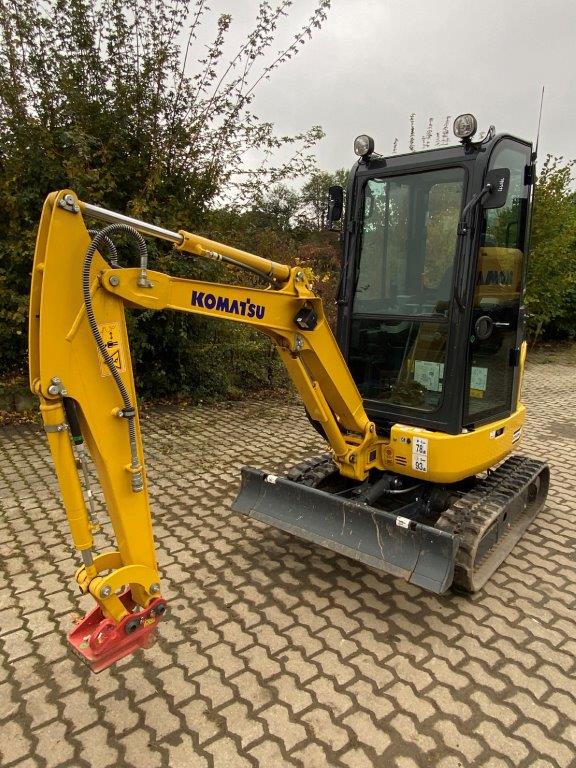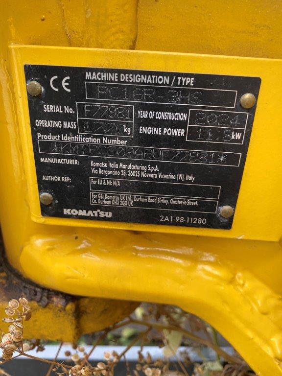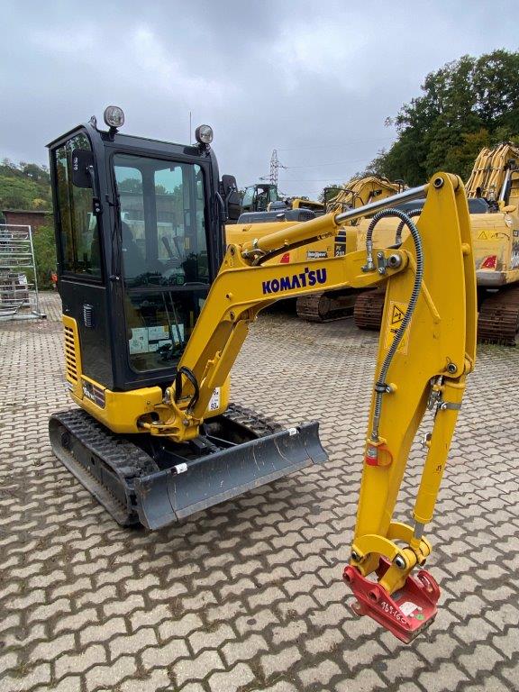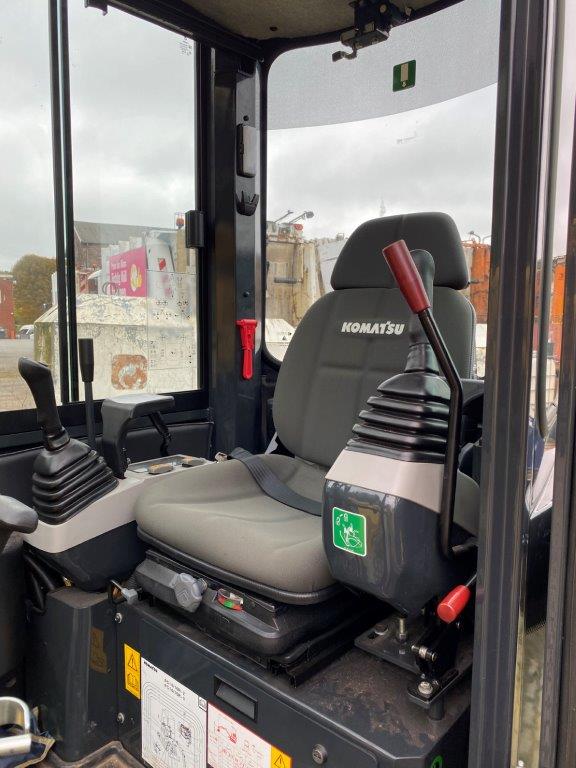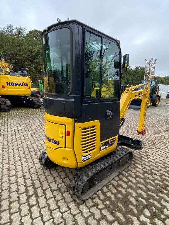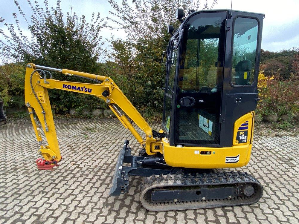 MINI EXCAVATOR KOMATSU PC 16 R-3 HS (EU-5) + 1.LEIT STD 2 TRAVEL SPEEDS WITH AUTOMATIC CONTROL (AUTO-SHIFT-DOWN) CLOSED-LOAD-SENSING-SYSTEM TWO-WAY AUXILIARY HYDRAULICS TO BOOM, SWITCHABLE TO HAMMER OPERATION DOZER BLADE WORK LIGHTS ON BOOM HYDR ADJUSTABLE UNDERCARRIAGE (HS) SWING BOOM, PROTECTIVE COVER FOR BOOM LIFT CYLINDER ACOUSTIC TRAVEL ALARM CE CONFORMITY 1.760 MM MONOBLOC BOOM HYD.CIRCUIT 1,215 MM DIPPER STICK +1 GUIDE STD STANDARD COUNTERWEIGHT POWER/LUBRICANTS STD RUBBER TRACK (SHORT PITCH) ACCELERATOR PEDAL CAB + HEATING DELUXE DRIVER'S SEAT 2FIX SAFETY BELT 2 LATERIAL MIRROR RADIO PREPARATION (WITHOUT RADIO) RADIO QUICK-CHANGE PLATE MS 01, MECH WITH LOAD HOOK C201