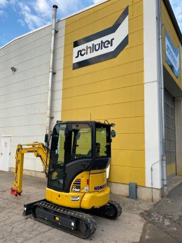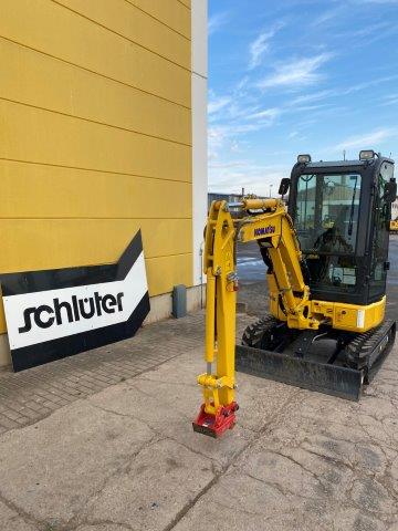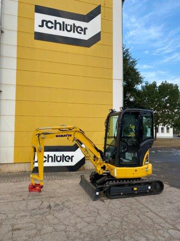 MINI EXCAVATOR KOMATSU PC 24 MR-5 PATTERN B WITH 2 TRAVEL SPEEDS WITH AUTO-SHIFT-DOWN SERVO PILOT CONTROL SWING BOOM 2-WAY AUXILIARY HYDRAULICS TO BOOM (SWITCHABLE TO HAMMER MODE) PROTECTIVE COVER ON BOOM LIFT CYLINDER 1 WORK LIGHT ON BOOM DOZER BLADE ACOUSTIC TRAVEL ALARM TOOL KIT CONFORMITY ACCORDING TO CE DIRECTIVES CAB + HEATER + 1 PROPORT.CABLE EPC FOR HYDR. ATTACHMENTS 1,810 MM MONOBLOC BOOM 1,320 MM DIPPER ARM + 1 CABLE SPRUNG DRIVER'S SEAT ONLY SAFETY BELT STD POWER/LUBRICANTS RUBBER TRACK RADIO ACCESSORIES + RADIO QUICK-CHANGE PLATE MS 03, MECH WITH LOAD HOOK C201