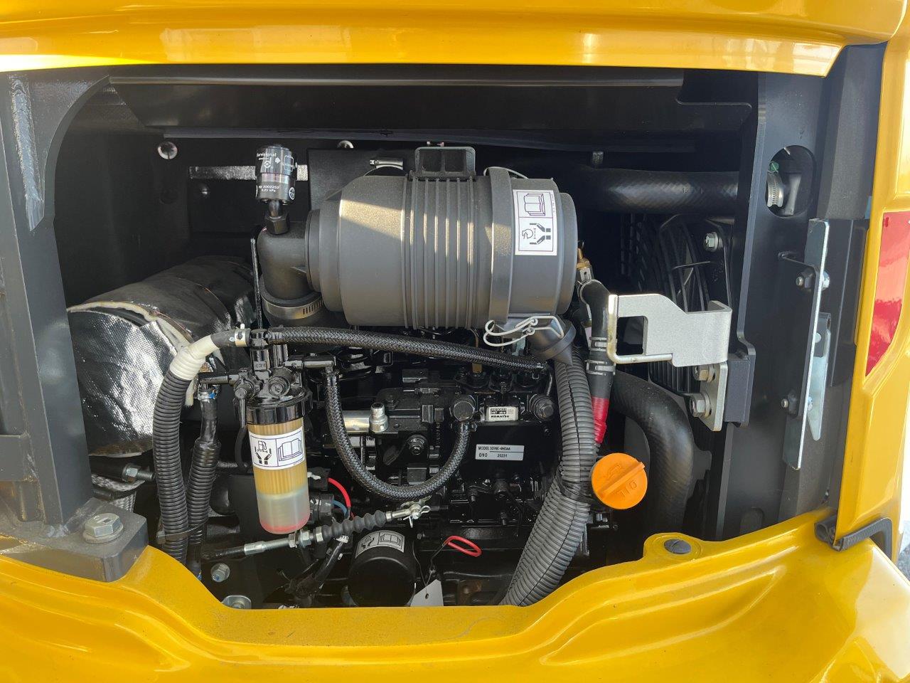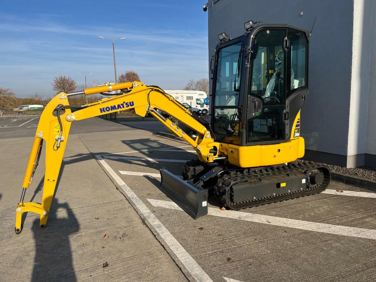 MINI EXCAVATOR KOMATSU PC 26 MR-5 (EU-5), PATTERN B, 2 SPEEDS AND AUTO-SHIFT-DOWN, SERVO PILOT CONTROL, SWING BOOM, 2-WAY AUXILIARY HYDRAULICS TO BOOM, (SWITCHABLE TO HAMMER MODE), PROTECTIVE COVER ON BOOM LIFT CYLINDER, WORKING LIGHTS ON BOOM, DOZER BLADE, INTEGRATED COUNTERWEIGHT, AUDIBLE TRAVEL ALARM, TOOL KIT, CONFORMITY ACCORDING TO CE DIRECTIVES, CAB + HEATING + 1 PROPORT.CABLE EPC, FOR HYDRAULIC ATTACHMENTS, 1,950 MM MONOBLOC BOOM, 1,370 MM DIPPER ARM + 1 CABLE, SUSPENDED DRIVER'S SEAT WITH 2"" FIXED SAFETY BELT, STD FUELS/LUBRICANTS, RUBBER TRACK, RADIO ACCESSORIES + RADIO, PRESSURE RELIEF VALVE