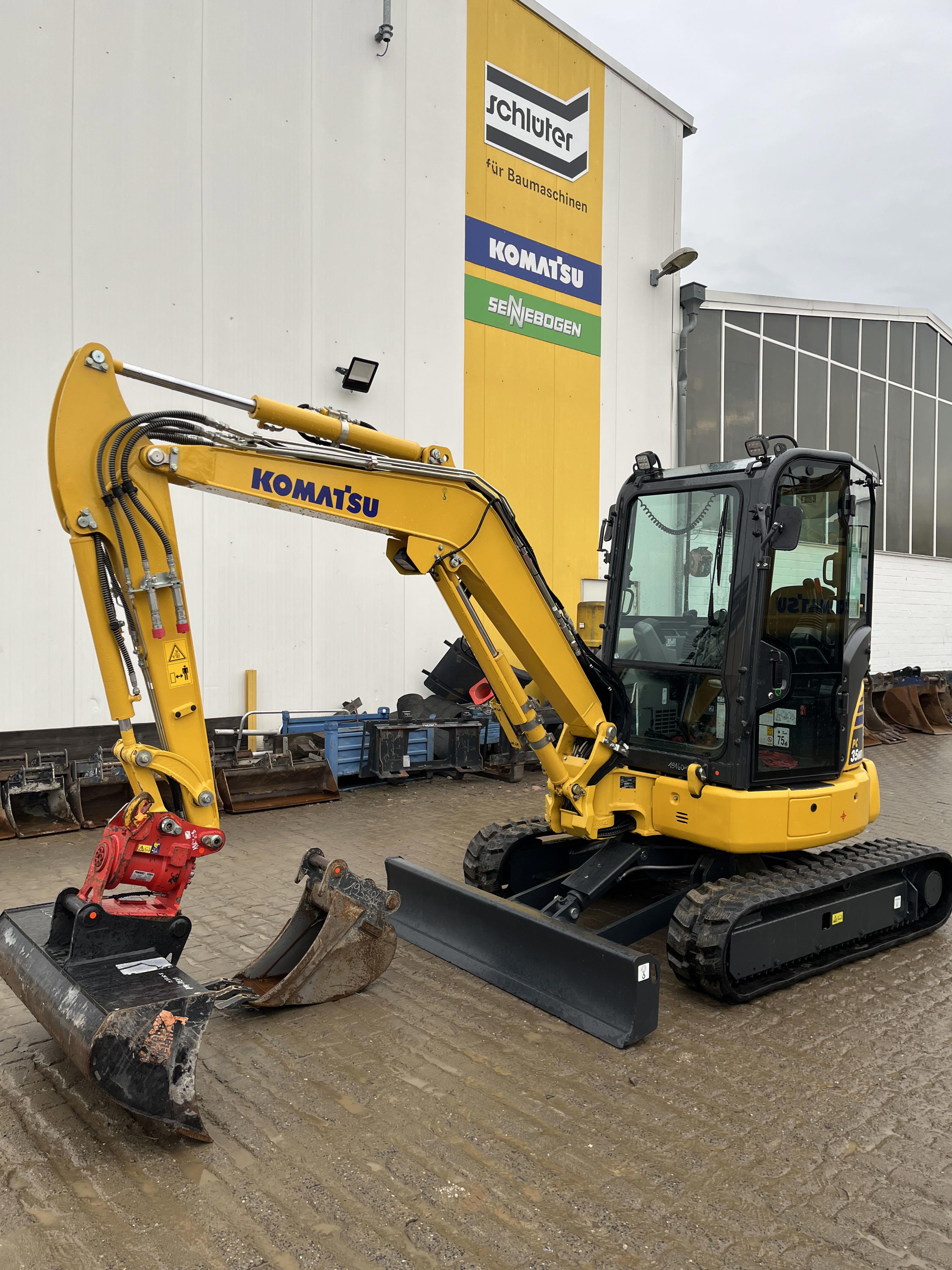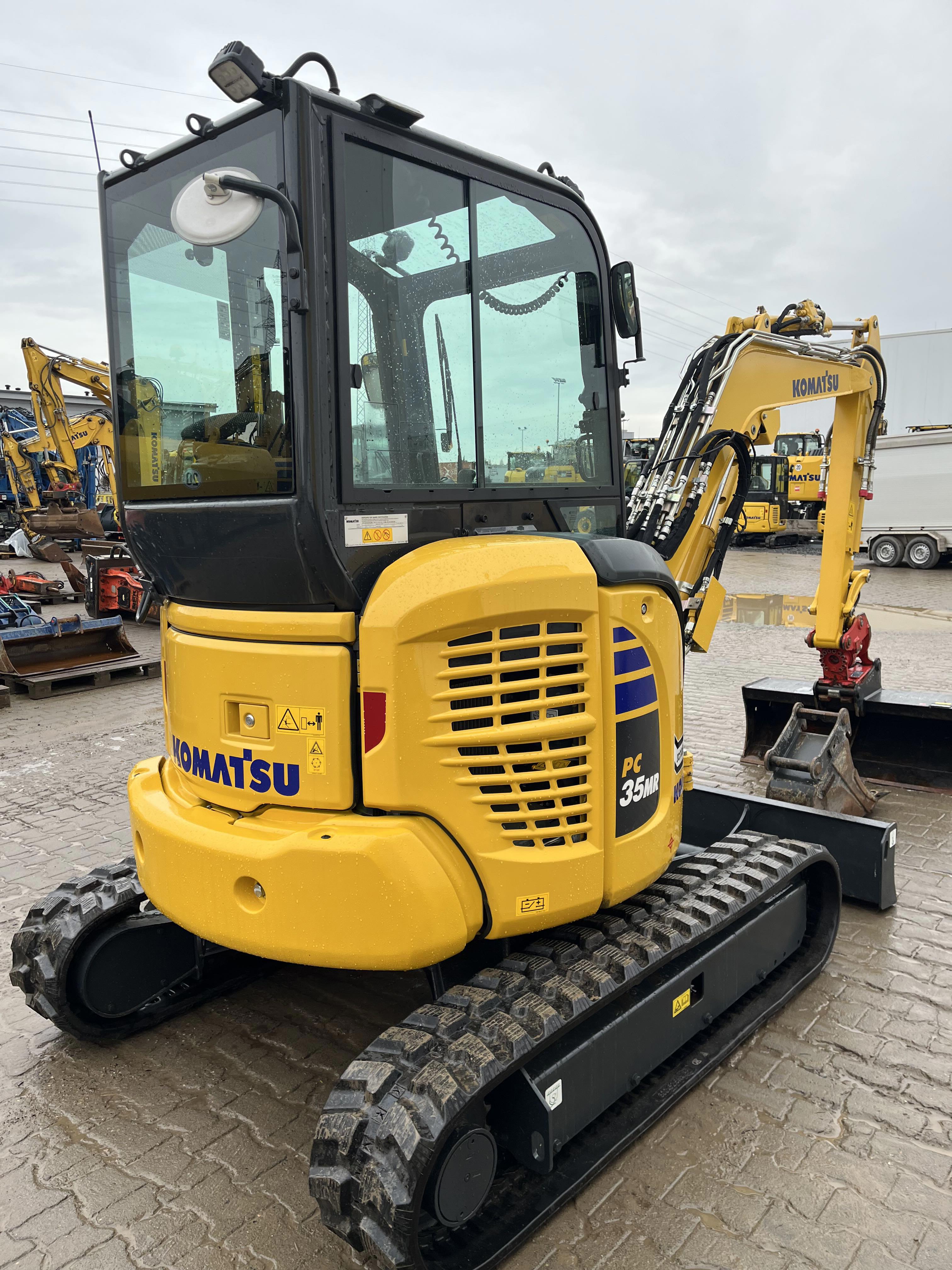 MINI EXCAVATOR KOMATSU PC 35 MR-5 (EU-5) PATTERN E CAB + HEATER + 2.PROP LINES EPC FOR HYDR ATTACHMENTS PATTERN E:CAB + HEATER + AUTO.RPM LOWERING, 2 PRPORTIONAL LINES EPC 2 SPEED LEVELS AND AUTO.SHIFT-DOWN FUNCTION SERVO PILOT CONTROL, SELECTABLE OPERATING MODES, MULTIFUNCTION MONITOR 3.5 (LCD) WARNING, SAFETY BELT, SLEWING BOOM 2-WAY AUXILIARY HYDRAULICS TO BOOM (SWITCHABLE TO HAMMER OPERATION) REINFORCED PROTECTIVE COVER ON BOOM LIFT CYLINDER, WORKING LIGHTS ON BOOM, DOZER BLADE COUNTERWEIGHT, 2 SIDE MIRRORS AUDIBLE DRIVING ALARM, KOMTRAX LEVEL 5 INTEGRATED KOMTRAX ANTENNA 3G COMMUNICATION TOOL KIT CE CONFORMITY 2.540 MM MONOBLOC BOOM ATTACHMENT EPC 1,370 MM DIPPER ARM+PWRT GUIDE+SW GUIDE GRAMMER SEAT WITH 2 RETRACTABLE SAFETY BELTS FOR CAB STD POWER/LUBRICANTS RUBBER TRACK 4 LED HEADLIGHTS (2X CAB FRONT + 1X REAR + 1X EXTERNAL) RADIO ACCESSORIES + RADIO POWERTILT SLEWING DEVICE PTS050 WITH HS 03DL QUICK COUPLER,LOAD HOOK C203