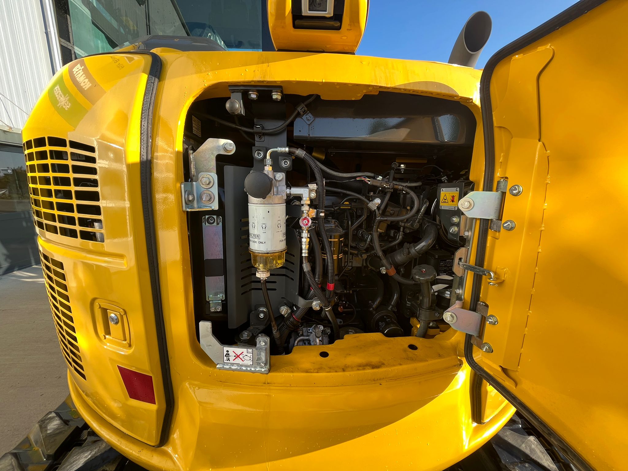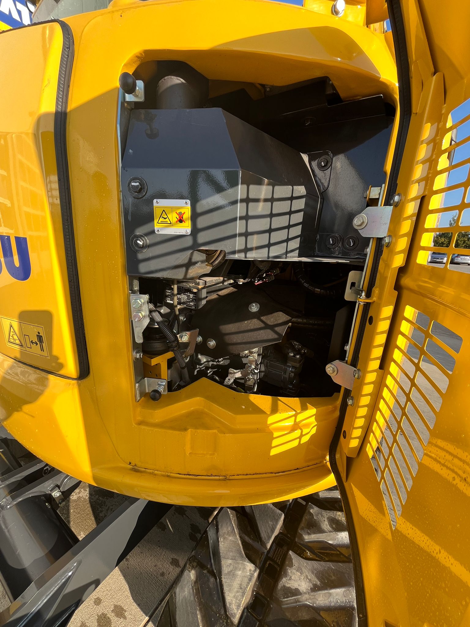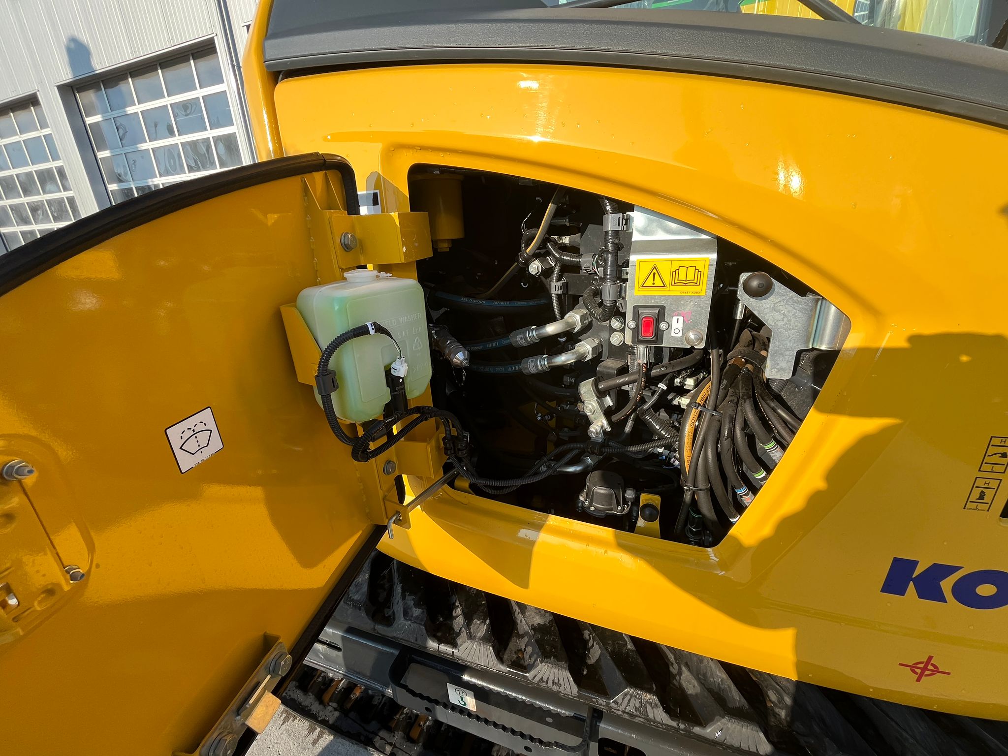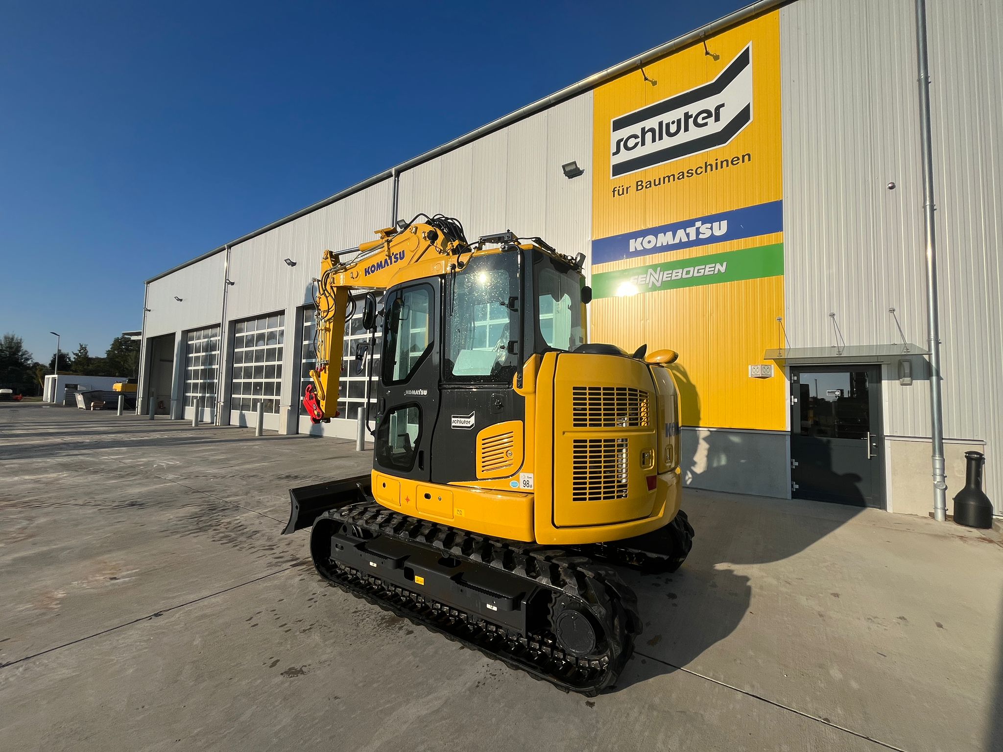MINI EXCAVATOR KOMATSU PC 88 MR-11E0 PATTERN F REINFORCED SPACE CAB (ROPS, OPG LEVEL 1) WITH OVERPRESSURE AND VIBRATION-DAMPED MOUNTING, AS WELL AS TINTED SAFETY GLASS PANES SLIDING WINDSHIELD WITH LATCHING POSITION AND REMOVABLE LOWER BARN,LARGE ROOF WINDOW WINDSHIELD WIPER WITH INTERMITTENT SWITCH 24V CIGARETTE LIGHTER ASHTRAY MAGAZINE HOLDER, 24V POWER CONNECTION CUP HOLDER, FLOOR MATS, HANDRAILS AUTOMATIC AIR CONDITIONING, SLIDING DOOR, KOMTRAX GPRS HEATED AIR-SUSPENDED DRIVER'S SEAT WITH ADJUSTABLE HEIGHT, LUMBAR SUPPORT, AIR CONDITIONING AND AIR CONDITIONING.HEIGHT,LUMBAR SUPPORT ADJUSTABLE ARMRESTS,AUTOMATIC SAFETY BELT ENGINE SHUTDOWN,SAFETY WARNING IN THE CAB,OVERLOAD WARNING DEVICE SLEWING BOOM (53° LEFT/67° RIGHT) SAFETY VALVE ON BOOM LIFT AND BUCKET STICK CYLINDER RADIO PREPARATION,AUDIBLE DRIVING ALARM TANK AND HOODS LOCKABLE REMOTE LUBRICATION FOR SLEWING GEAR UBOLT COUNTERWEIGHT,TOOLBOX 2 X LED WORK LIGHTS ON THE BOOM (RIGHT AND LEFT SIDE) 4 X LED WORK LIGHTS AT THE FRONT OF THE CAB ROOF LED WORK LIGHTS AT THE REAR OF THE CAB ROOF,ROTATING BEACON ON CAB ROOF RAIN PROTECTION (FRONT ON CAB ROOF) LEFT LATERAL MIRROR ON CAB REAR-VIEW MIRROR ON CAB ROOF HIGH-RESOLUTION REVERSING CAMERA INTEGRATED IN HOOD SIDE CAMERA (RIGHT) (WITH AUTOMATIC SWITCH-OFF) TOOL KIT, CE-COMPLIANT RUBBER TRACK + DOZER BLADE ADJUSTABLE BOOM (2 LINES) 1.900 MM DIPPER ARM HCU D (2 LINES) FUELS/LUBRICANTS STD DAB RADIO