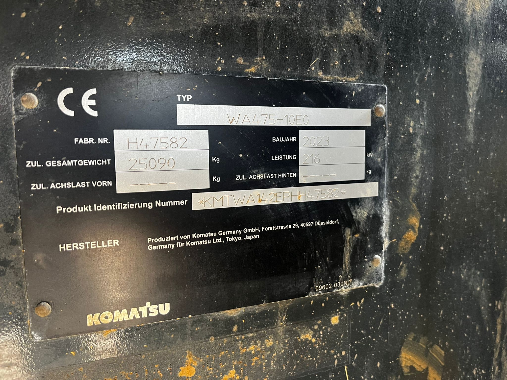 WHEEL LOADER KOMATSU WA 475-10E0 SPACE CAB CAB, ROPS/FOPS ECSS II - ELECTRIC LOAD DAMPING SYSTEM TURBO II, TURBINE PRE-FILTER, SELF-SEPARATING LSD AXLES WITH LOCKING DIFFERENTIAL STANDARD LIFT ARM 4 WHEELS 26.5 R25 4.9 CBM BUCKET (ZFE), 3,200 MM WIDE
