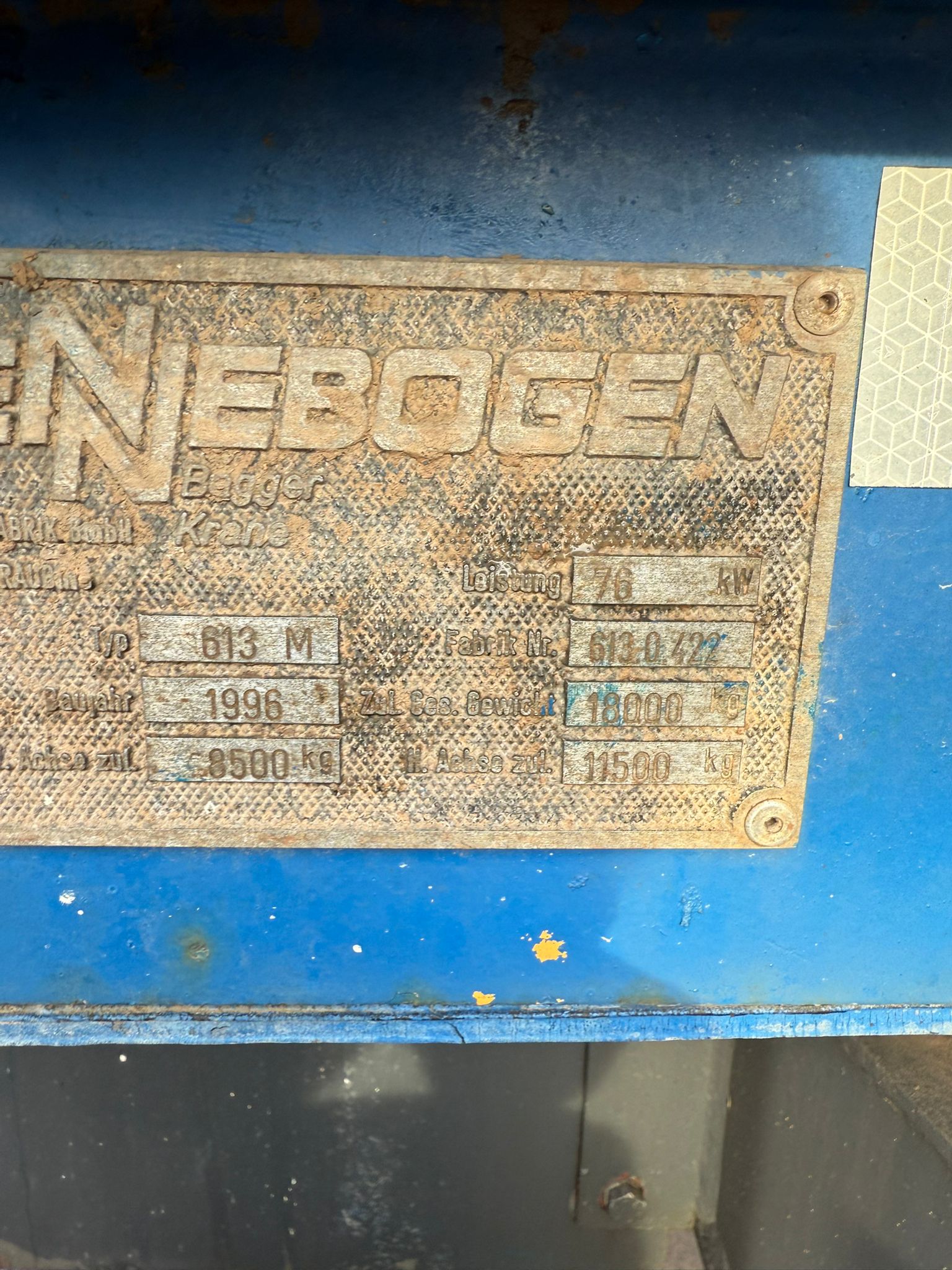 MOBIL-TELESKOPKRAN SENNEBOGEN 613 B 4-ZYLINDER DEUTZ-MOTOR, 98 PS BETRIEBSGEWICHT: 15,9 TONNEN SONDERLACK BLAU KRANWINDE 4-FACH PRATZE TELESKOPAUSLEGER, 3-TEILIG KRANHAKEN BEREIFUNG 10.00-20 (8-FACH)