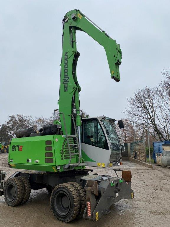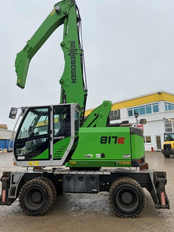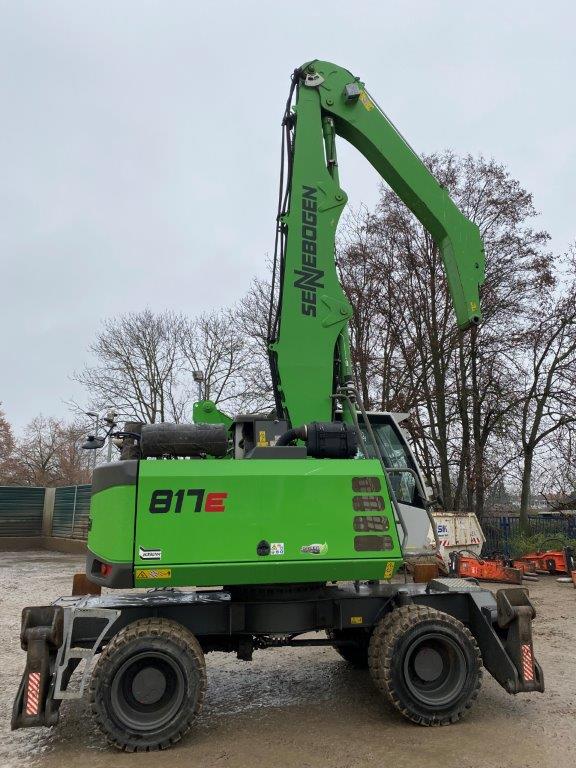 UMSCHLAGMASCHINE SENNEBOGEN 817 M, MOBILUNTERWAGEN - SERIE E, TIER 4 FINAL MOBILUNTERWAGEN MP17E MIT 4-PUNKT-ABSTÜTZUNG PAH4 VOLLGUMMIREIFEN 9.00-20 (8-FACH) JOYSTICKLENKUNG ZUSATZBALLAST 0,5 T AM GEGENGEWICHT KABINENVERSTELLUNG E240,MULTICAB SENNEBOGEN MULTICAB KOMFORTFAHRERKABINE LUFTGEFEDERTER KOMFORT-FAHRERSITZ SICHERHEITSGURT / 2 ZOLL SCHEIBENWISCHER FÜR DACHSCHEIBE SCHEIBENWISCHER FÜR UNTERE KABINENFRONT- SCHEIBE SONNENROLLO FÜR DACHFENSTER, INNEN SONNENROLLO FÜR FRONTSCHEIBE, INNEN RADIO / USB, SD, MP3, BLUETOOTH STANDARD BETRIEBSSTOFFE F. UMGEBUNGS- TEMPERATUREN VON -20°C BIS +40°C HYDRAULIKÖL SHELL TELLUS S2 VA 46 SPIEGEL RECHTS UND HINTEN SENNEBOGEN HYDRO-CLEAN AUTOMATISCHE ZENTRALSCHMIERUNG FÜR AUSRÜSTUNG UND DREHKRANZLAUFBAHN K9 ARBEITSAUSRÜSTUNG: 5,3M + 3,8M SCHNELLWECHSELKUPPLUNGEN SCHRAUBBAR MIT GEGENSTÜCKEN ROHRBRUCHSICHERUNG AM STIELZYLINDER BARGRAPH DRUCK-ANZEIGE (HUBZYLINDER)IM SENCON MIT AKUSTISCHER WARNUNG STANDARDLACKIERUNG RAL 7038 / RAL 6018 / RAL 7022 2 LED SCHEINWERFER AM STIEL: JE 1 ST. LINKS, 1 ST. RECHTS 1 LED SCHEINWERFER AM KOMPAKTAUSLEGER UNTEN AUSLEGERDÄMPFUNG BEDIENUNGS- UND WARTUNGSANLEITUNG IN DEUTSCHER UND ENGLISCHER SPRACHE ERSATZTEILLISTE 2FACH IN DEUTSCHER UND ENGLISCHER SPRACHE SENTRACK DS TELEMETRIESYSTEM