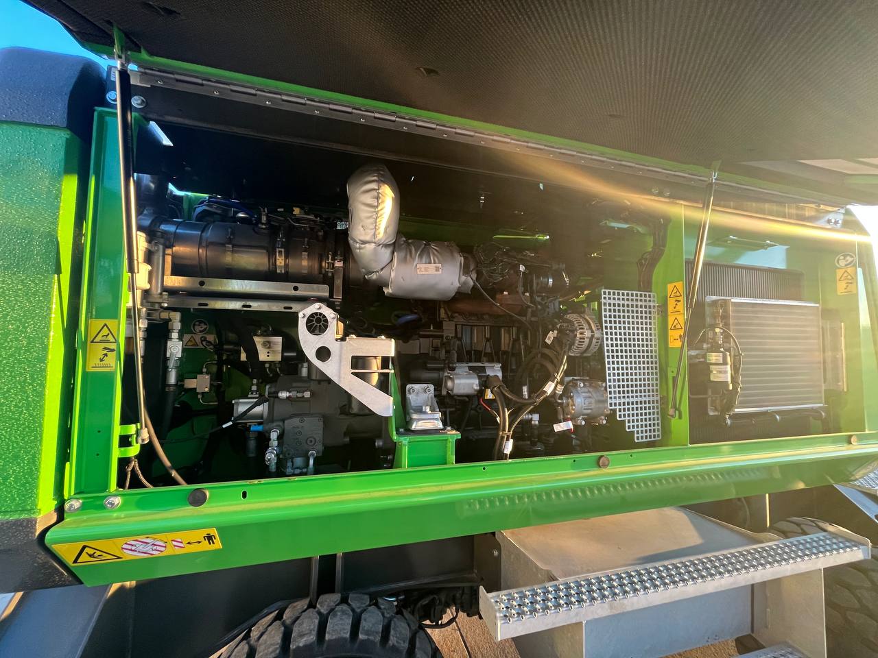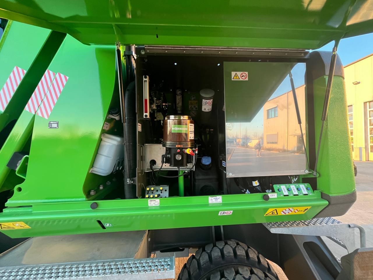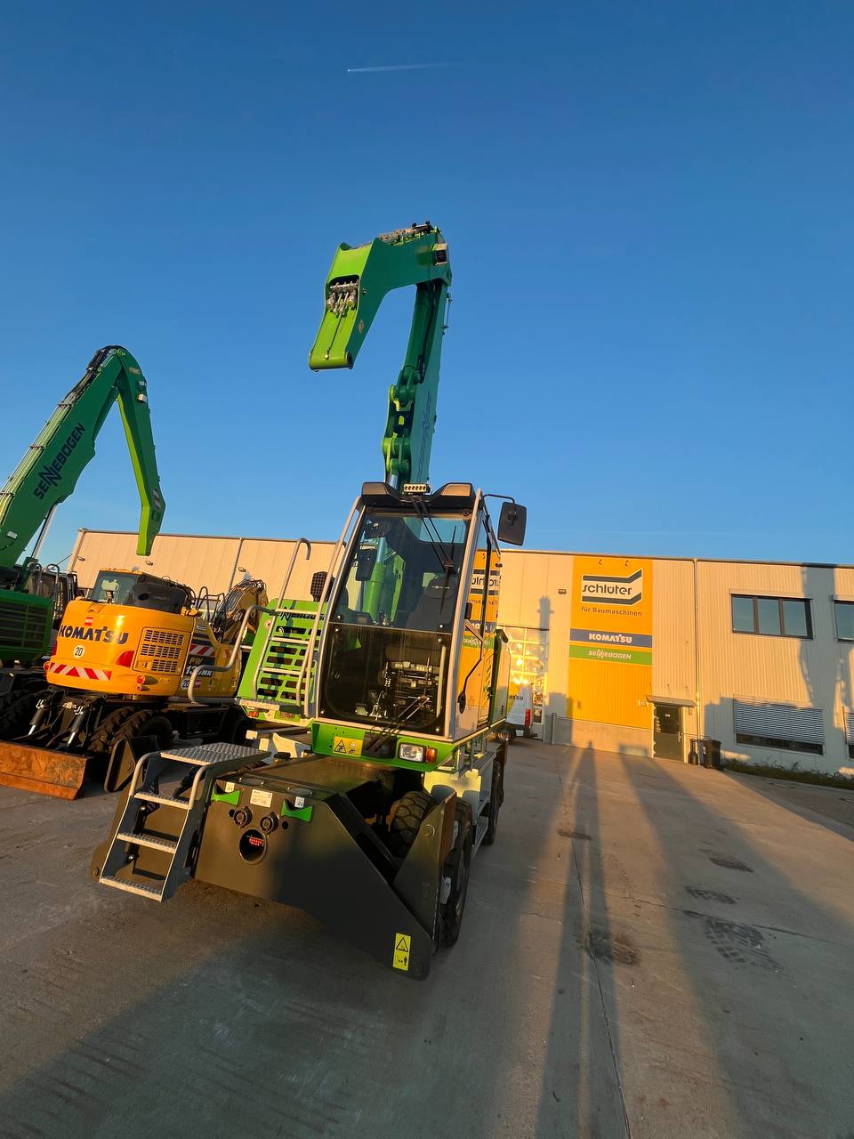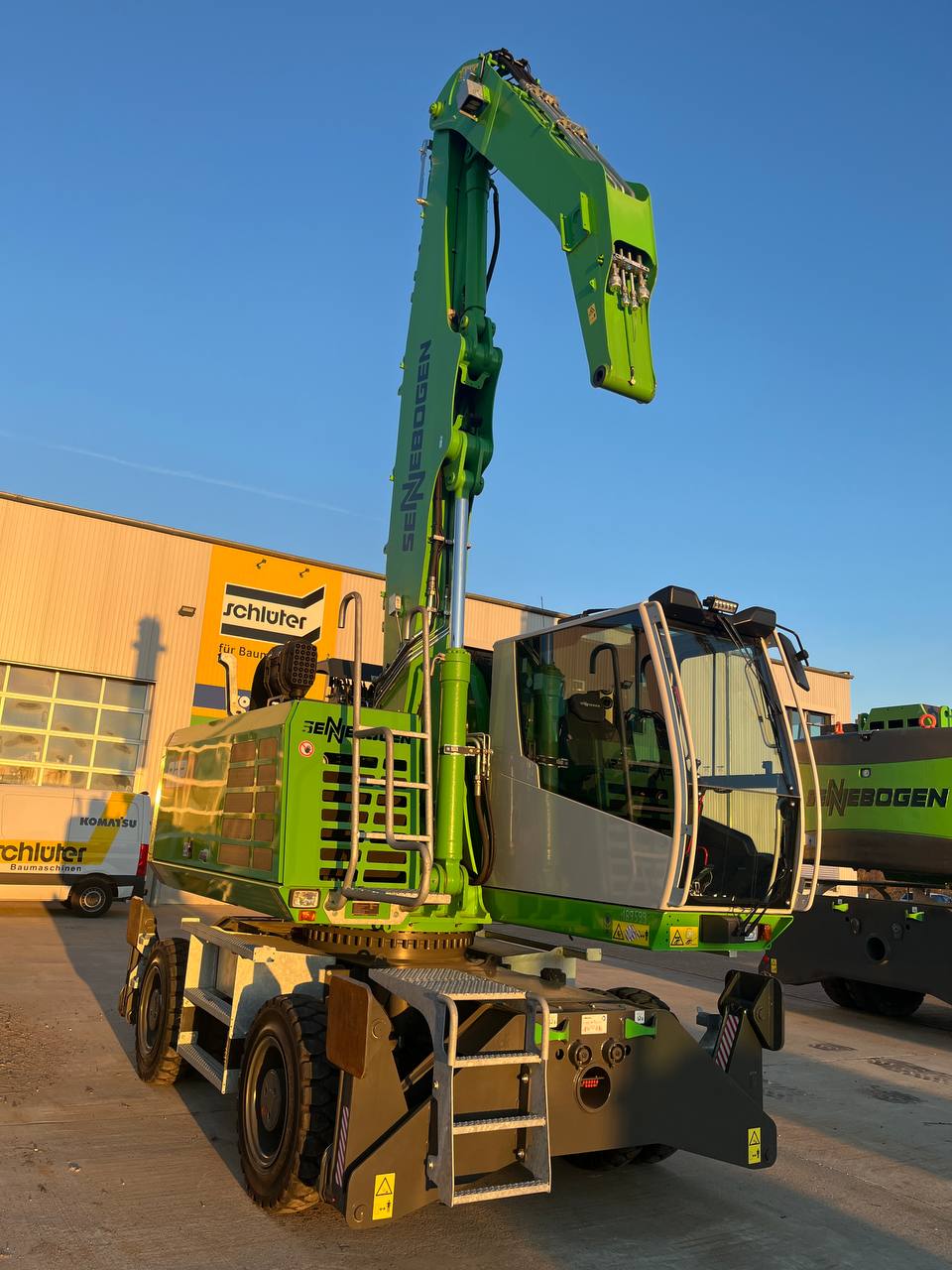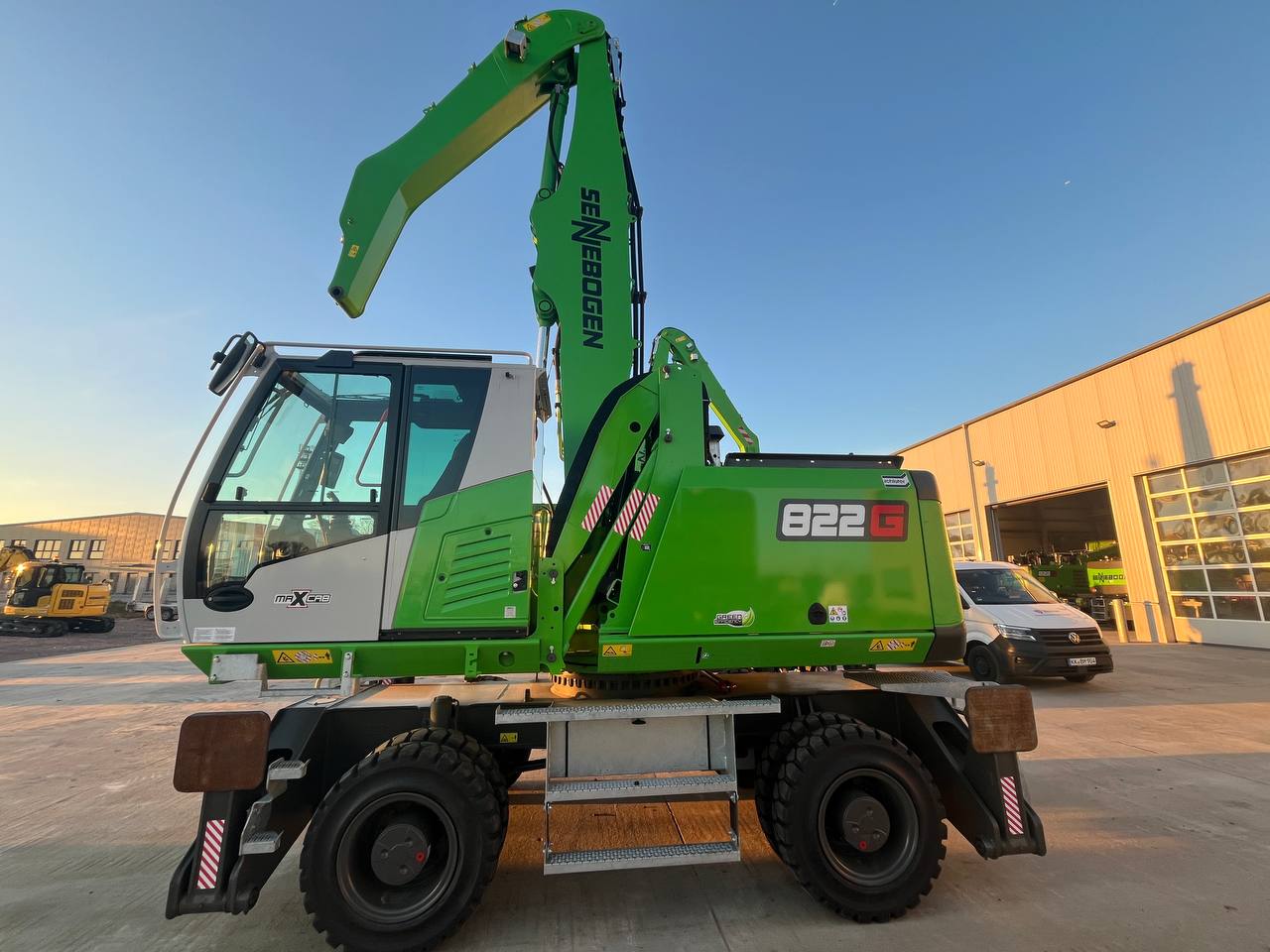 UMSCHLAGMASCHINE SENNEBOGEN 822 M SERIE G - EU STUFE V/ TIER 4 FINAL,109KW LEISTUNGSPAKET DIESELMOTOR MOBILUNTERWAGEN MP21E 4-PUNKT-ABSTÜTZUNG PAH4 VOLLGUMMIREIFEN 10.00-20 (8FACH) JOYSTICKLENKUNG (NUR MOBILGERÄTE) ABSTÜTZTELLER 425 X 380MM KABINENVERSTELLUNG G280,MAXCAB SENNEBOGEN MAXCAB KOMFORTFAHRERKABINE LUFTGEFEDERTER KOMFORT-FAHRERSITZ SICHERHEITSGURT/ 2 ZOLL SCHEIBENWISCHER FÜR DACHSCHEIBE SCHEIBENWISCHER FÜR UNTERE KABINENFRONT- SCHEIBE KABINENFRONTSCHEIBE IN PANZERGLASAUS- FÜHRUNG FÜR MAXCAB DACHFENSTER MIT SICHERHEITSVERGLASUNG FÜR MAXCAB KOMFORTFAHRERKABINE RADIO / USB, MP3, BLUETOOTH STANDARD BETRIEBSSTOFFE (OHNE HYDRAULIKÖL) HYDRAULIKÖL SHELL TELLUS S2 VA 46 SENNEBOGEN HYDRO-CLEAN K9 ARBEITSAUSRÜSTUNG: 5,3M + 3,8M SCHNELLWECHSELSTECKER SCHRAUBBAR MIT GEGENSTÜCKE BARGRAPH DRUCK-ANZEIGE(HUBZYLINDER) IM SENCON MIT AKUSTISCHER WARNUNG 2 LED SCHEINWERFER AM STIEL JE 1 X LINKS UND 1 X RECHTS 1 LED SCHEINWERFER AM AUSLEGER UNTEN STANDARDLACKIERUNG RAL 7038 / RAL 6018 / RAL 7022 BEDIENUNGS- UND WARTUNGSANLEITUNG IN DEUTSCHER ODER ENGLISCHER SPRACHE ERSATZTEILKATALOG ONLINE SENTRACK TELEMETRIESYSTEM KAMERASYSTEM - BASISPAKET BELEUCHTUNGSPAKET 1 SENTRACK LAUFZEITVERLÄNGERUNG DER STAND- ARD UM 2 JAHRE